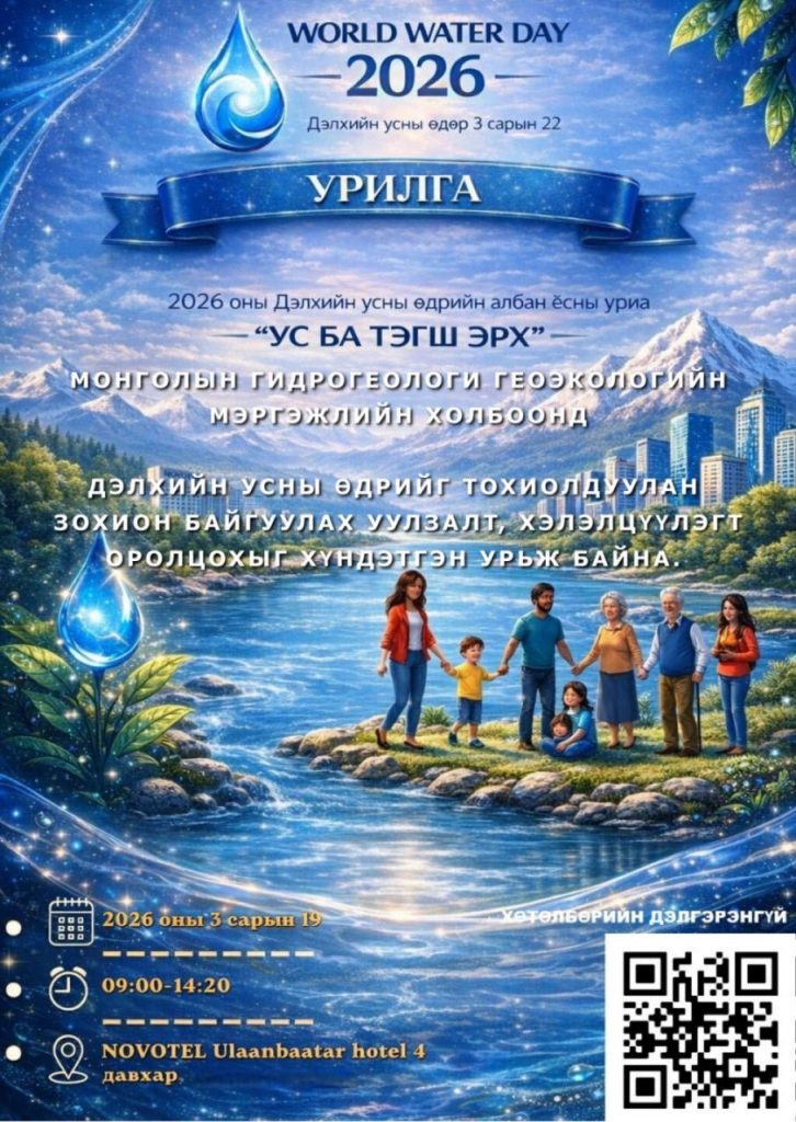 Монголын Гидрогеологи Геоэкологийн мэргэжлийн холбооны зүгээс Дэлхийн усны өдрийг угтан хийсэн ажлууд: